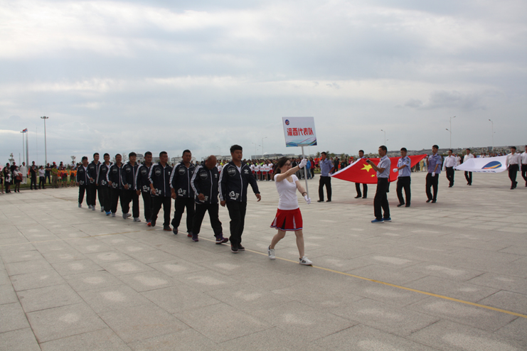 9点整开始举行开幕式,在雄壮的《运动员进行曲》中,8名司旗手分别手托国旗和云开平台公司司旗,24名彩旗手高举五彩旗首先入场。紧接着,灌西代表队、台北代表队、供电代表队、黄化制钙代表队、利海代表队、氯碱代表队、徐圩代表队、机关代表队、华茂代表队、房地产代表队、氨纶代表队、新材料代表队12支代表队、130余名运动员以及裁判组成员依次入场。