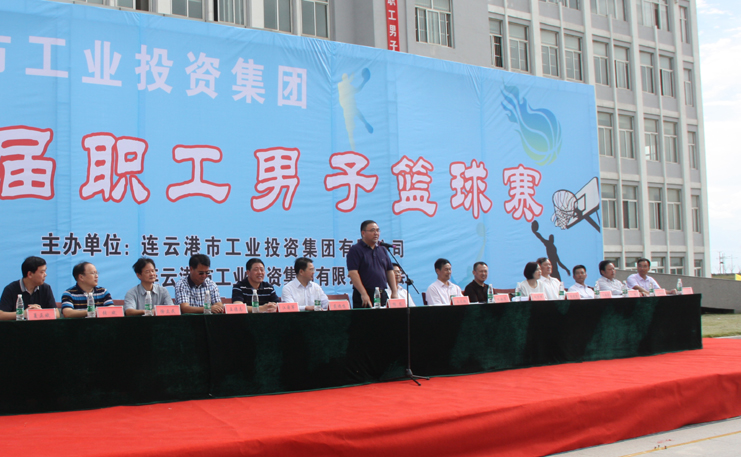 云开平台公司董事长、党委书记杨龙宣布,连云港市工业投资公司云开平台第一届职工男子篮球赛正式开幕。
