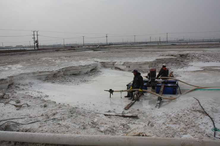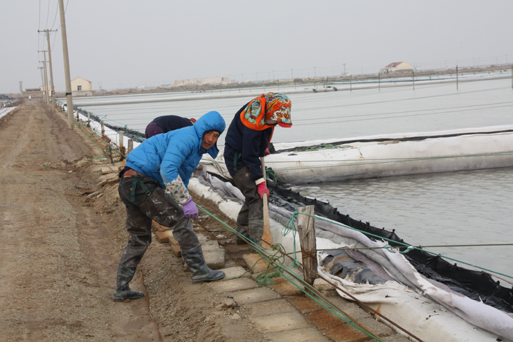 2月6日上午,在新河制盐分公司的九班,我们看到工人们正在下马格内和格,为尽快灌池生产打好基础,在十班,工人有的正在清除硫酸钙,有的修整结晶池埝,而在八班的滩头,一台挖掘机正在盐廩上装盐销售,日晒制盐公司广大员工掀起春季生产热潮,处处都是忙碌景象。据了解,随着市场回暖,日晒制盐公司的原盐销售较前两年同期无论是在数量上,还是在价格上都有所增长。为了抓住这一难得的销售机遇,不断扩大市场占有率,公司计划组织两个制盐分公司在近期开展扒盐工作,以确保原盐销售工作不中断。为此,各生产单位紧紧围绕这一工作重心,在抓好日常生产的同时,精心做好扒盐前的各项准备工作,努力确保扒盐工作正常有序开展。与此同时,部分尚不具备扒盐条件的班组则抓紧时间做好除硫池清理、撤格池板的整平以及土工布更换等工作,为春季生产做好各项准备工作。(封杨)