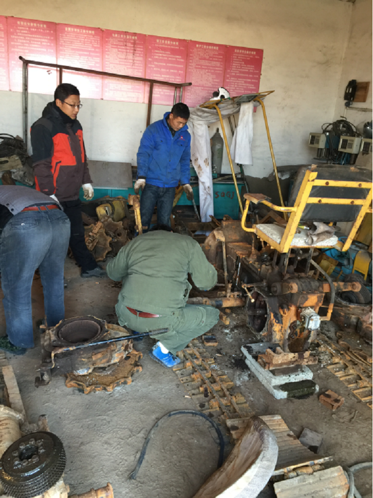 (为了确保扒盐机械的正常保养,维修组组长王永来正在查看购买的配件及入库。)
