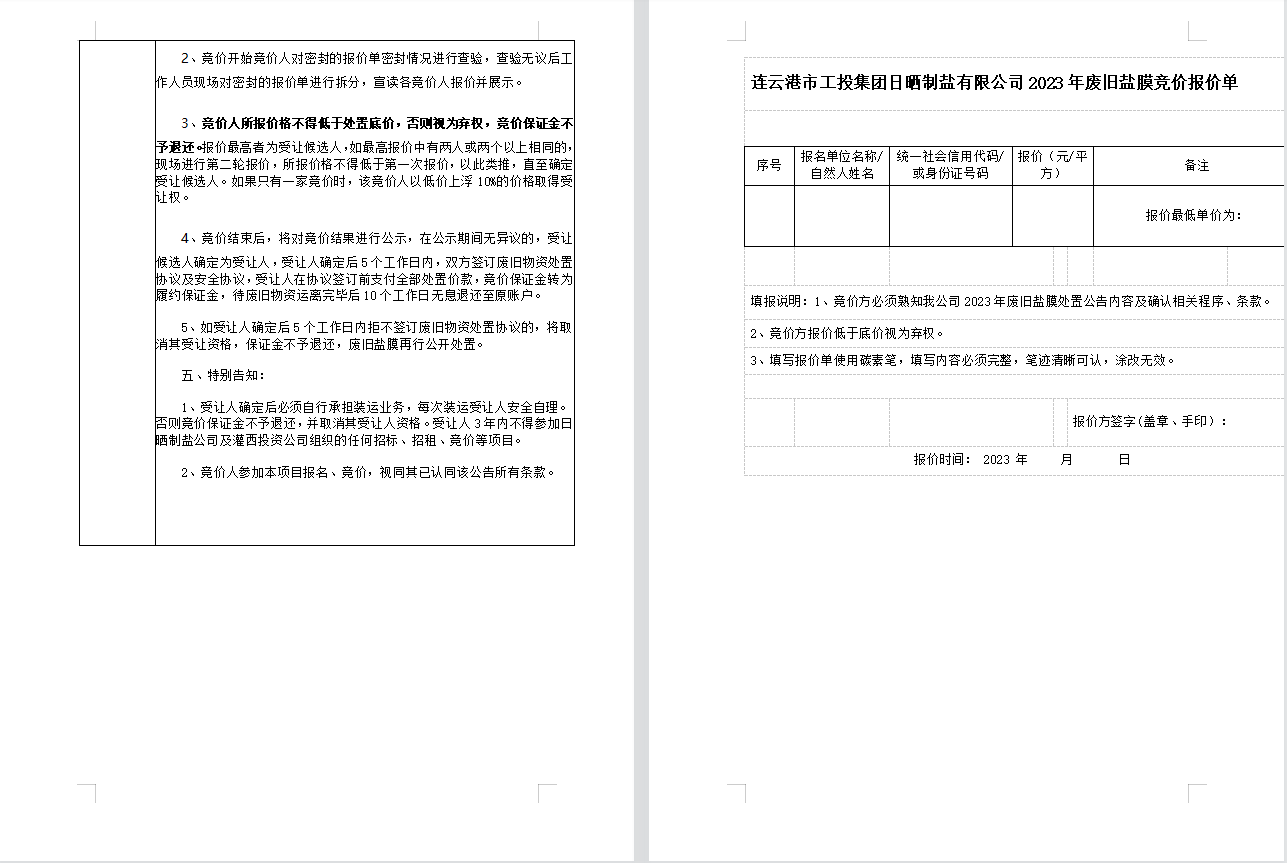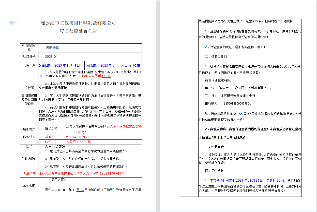 连云港市工投云开平台日晒制盐有限公司废旧盐膜处置公告