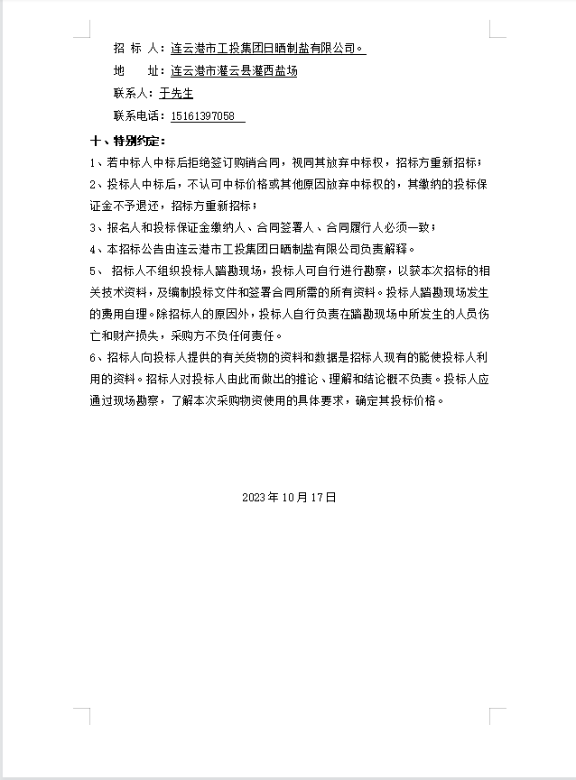 连云港市工投云开平台日晒制盐有限公司玻璃纤维杆招标公告