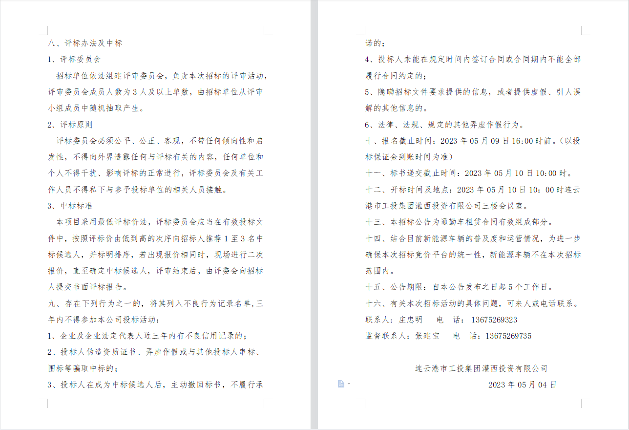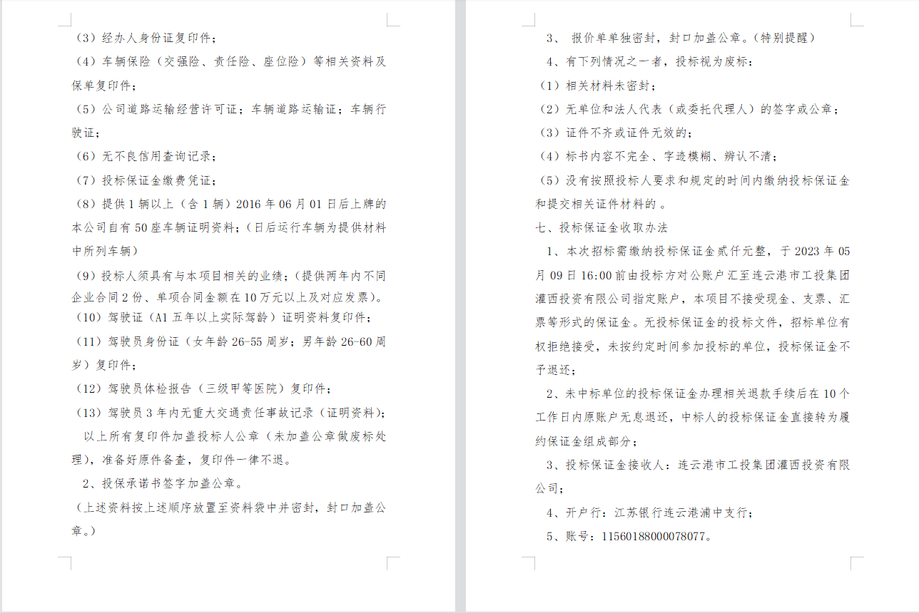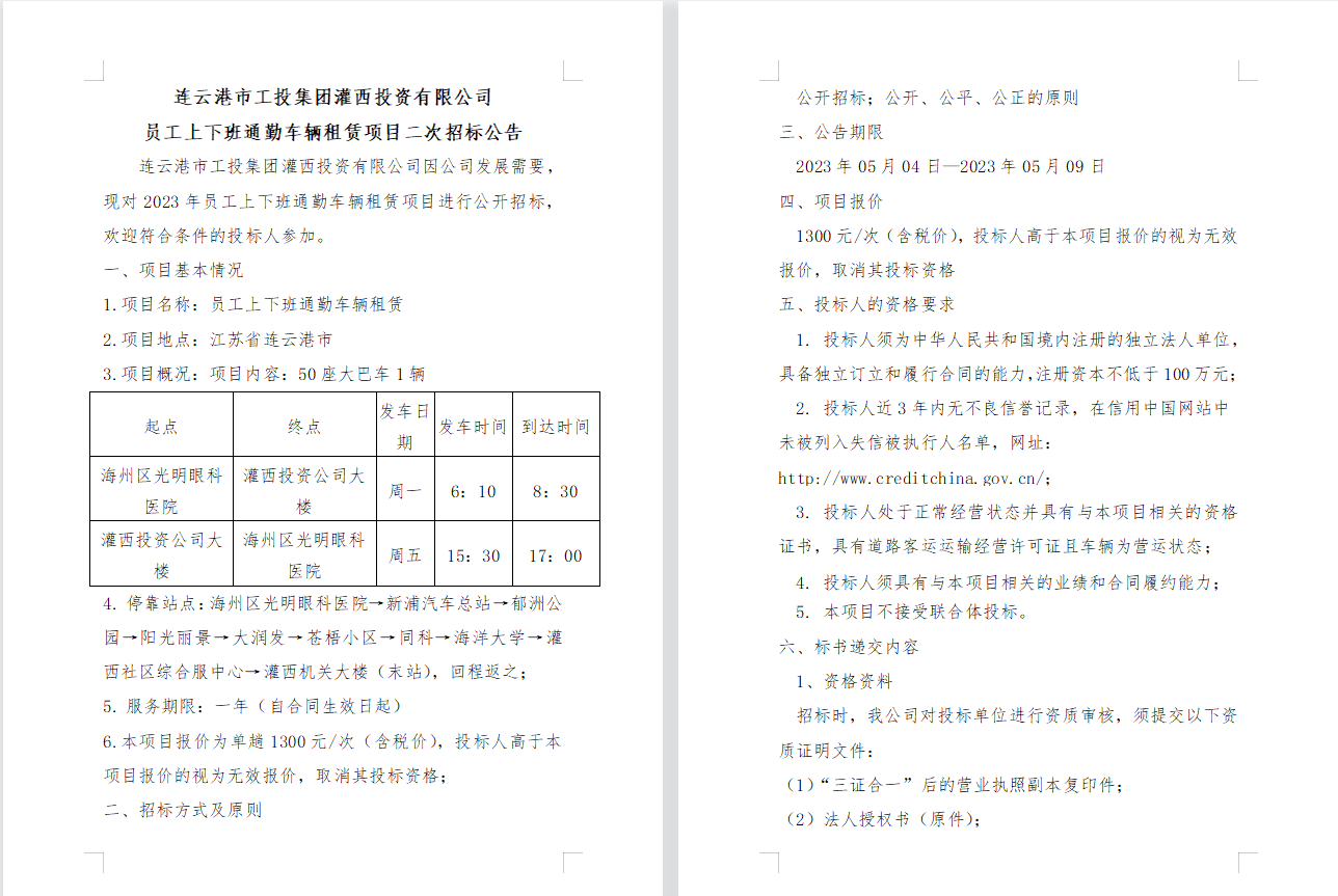 连云港市工投云开平台灌西投资有限公司 员工上下班通勤车辆租赁项目二次招标公告