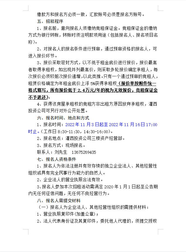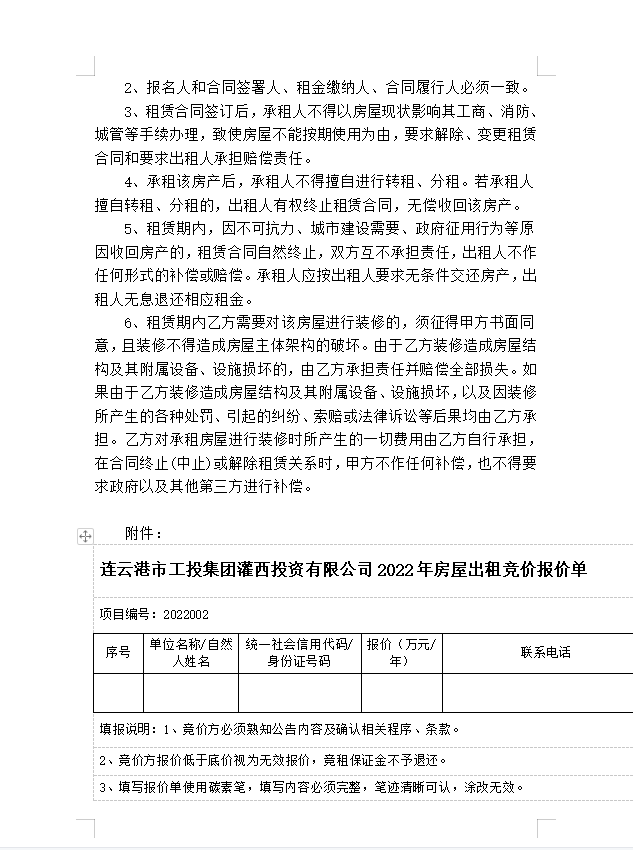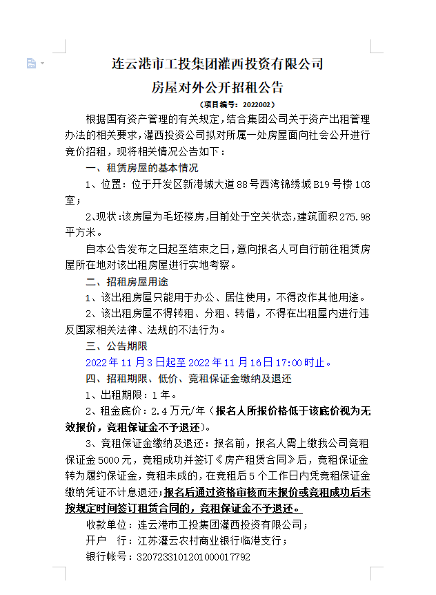 连云港市工投云开平台灌西投资有限公司房屋对外公开招租公告