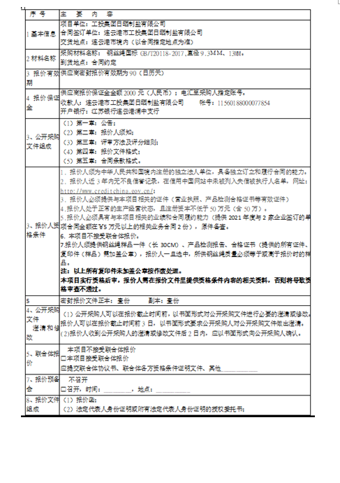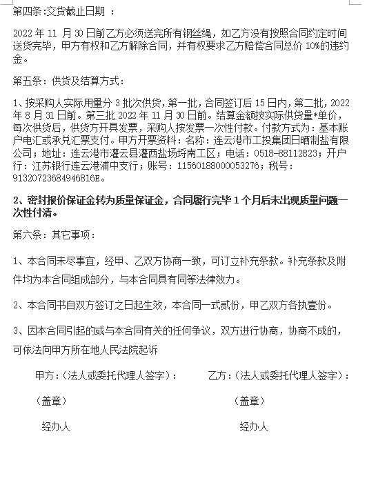 连云港市工投云开平台日晒制盐有限公司钢丝绳采购项目