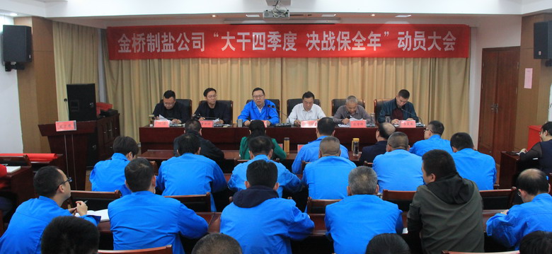 会上,副总经理惠志明作了《20191-9月份经济活动分析》。然后,副总经理曹开明宣读了《2019年大干四季度劳动竞赛意见》。接着,董事长、党委书记、总经理朱桂玉作了动员讲话。最后,加工盐车间、包装盐车间、品种盐分公司进行表态发言。