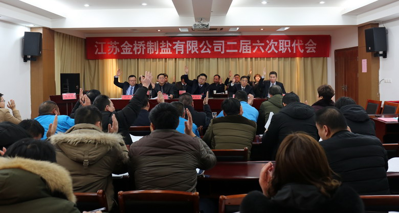 2月15日上午,我公司二届六次职代会在公司三楼会议室隆重召开,来自各车间、单位、部门的46名职工代表参加了会议,共同商讨金桥制盐发展大计。公司领导班子成员及职工代表出席会议,部分先进代表列席会议。公司董事长、党委书记、总经理朱桂玉作工作报告。大会由公司党委副书记、纪委书记、工会主席李昊睿主持。