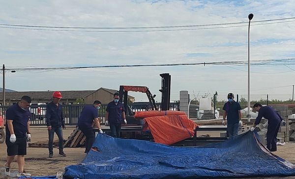 期间,共整理毡盖塑(帆)布1000余平方、清洁厂区地面近500平方、清洁室内墙面70余平方。(金宣)