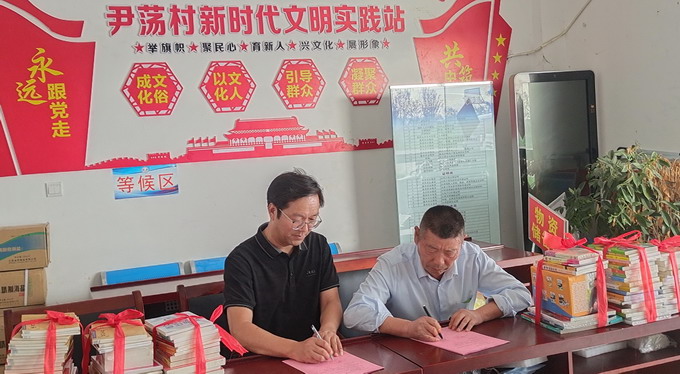 公司党委副书记、纪委书记、工会主席曹开明,灌南县北陈集镇尹荡村党总支书记孙克玉代表共建双方续签共建协议;向该村赠送了名人传记、农技推广和文学艺术等各类图书100余册,向乡民赠送了文明共建纪念品;参观了该村党员活动室、党史室、村史陈列室,听取了孙克玉对该村概况的介绍。