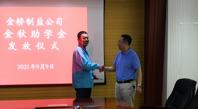 9月9日下午,我公司举行金秋助学金发放仪式,公司党委书记、董事长、总经理朱桂玉为受助学子家庭发放助学金,公司党委副书记、纪委书记、工会主席曹开明主持发放仪式。