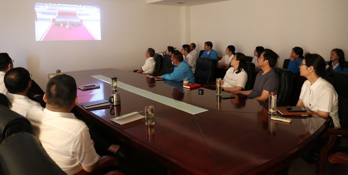 7月1日上午8时,我公司党委领导班子全体成员、各支部党员干群齐聚二楼会议室,集中收看在天安门广场上举行的庆祝中国共产党成立100周年大会,认真学习中共中央总书记、国家主席、中央军委主席习近平发表的重要讲话。