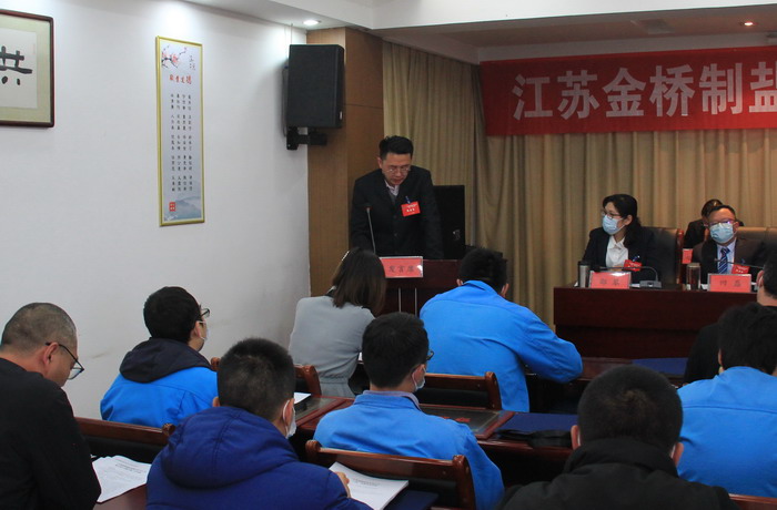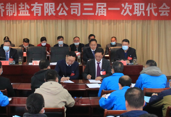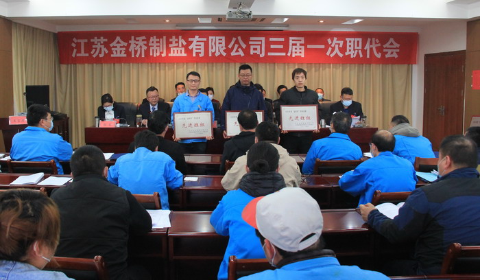 大会签订了《2021年度集体合同》、《2021年度经营认标责任书》,与会代表认真审议通过了总经理工作报告,通过了大会决议、有关方案和意见。加工盐车间、包装盐车间、销售部依次作了表态发言。大会表彰了第九届“金桥杯”劳动竞赛、2020年“大干四季度”劳动竞赛的先进集体和先进个人以及2020年度“金桥工匠”。(金宣)