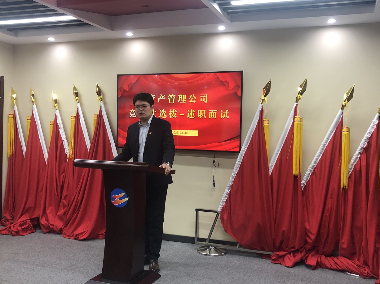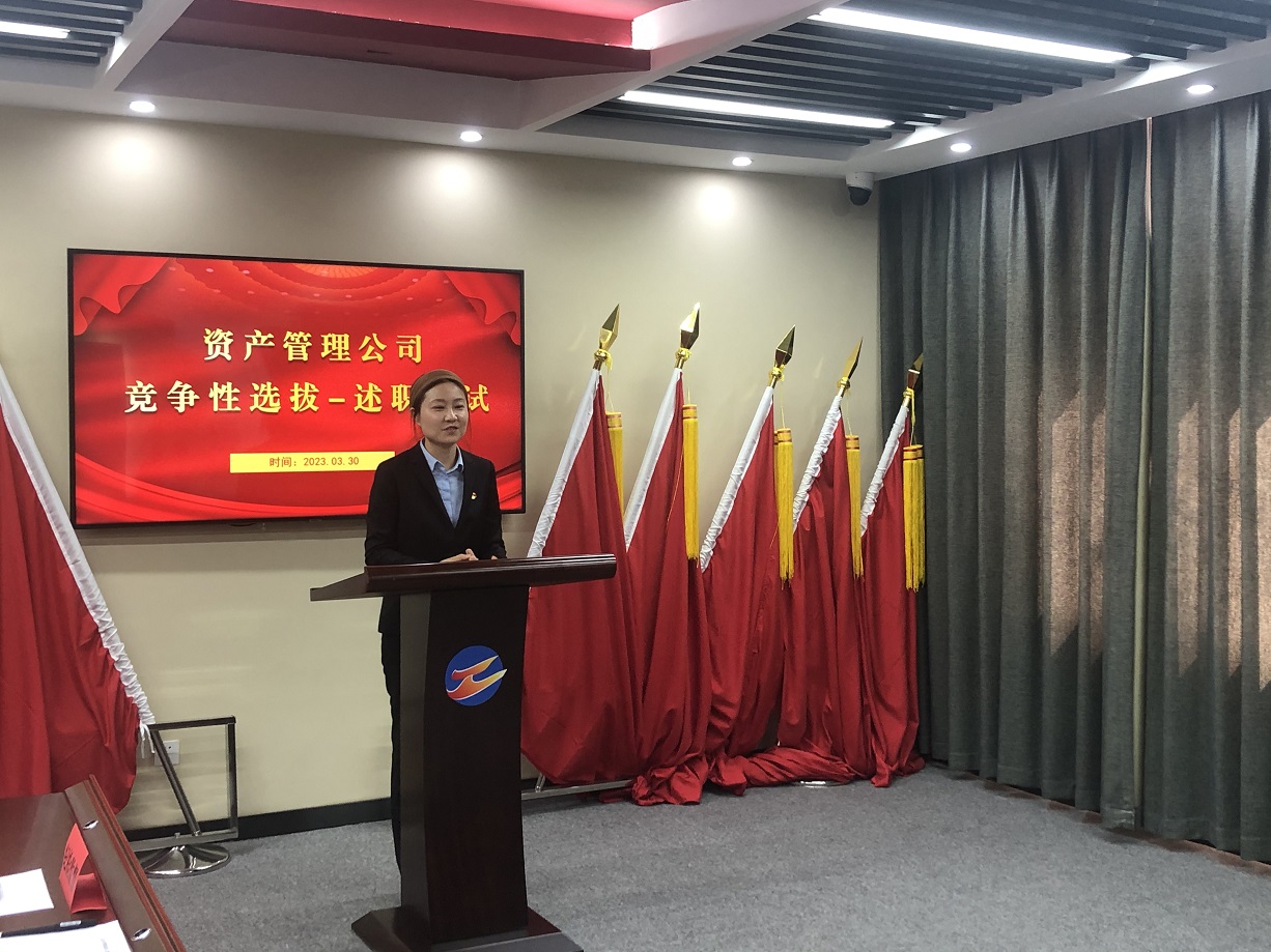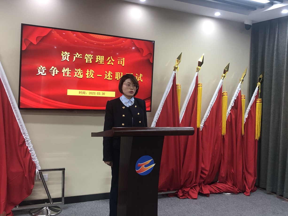 资产管理公司制定了《“竞争性选拔”实施方案》。前期通过自愿报名、宣传动员、资格审查等环节,共有7名候选人进入述职面试环节。面试采取“演讲+答辩”的方式进行,既考核竞聘者的语言表达、临场应变和逻辑思维等能力,又检验竞聘者的业务水平和岗位匹配性。竞聘现场,应聘人员通过抽签轮流进行面试,展示各自风采,气氛紧张而又激烈。评委组根据竞聘者台上的演讲内容及答辩情况现场打分。