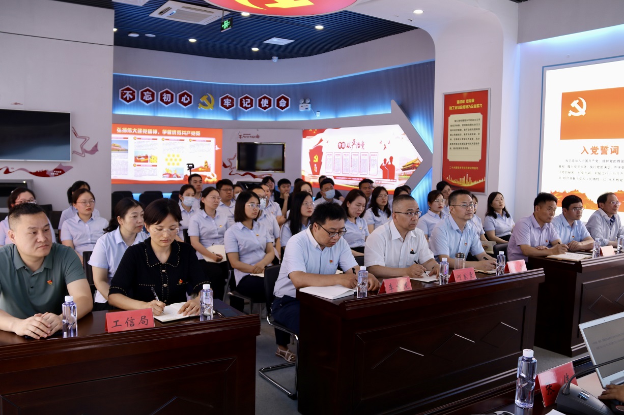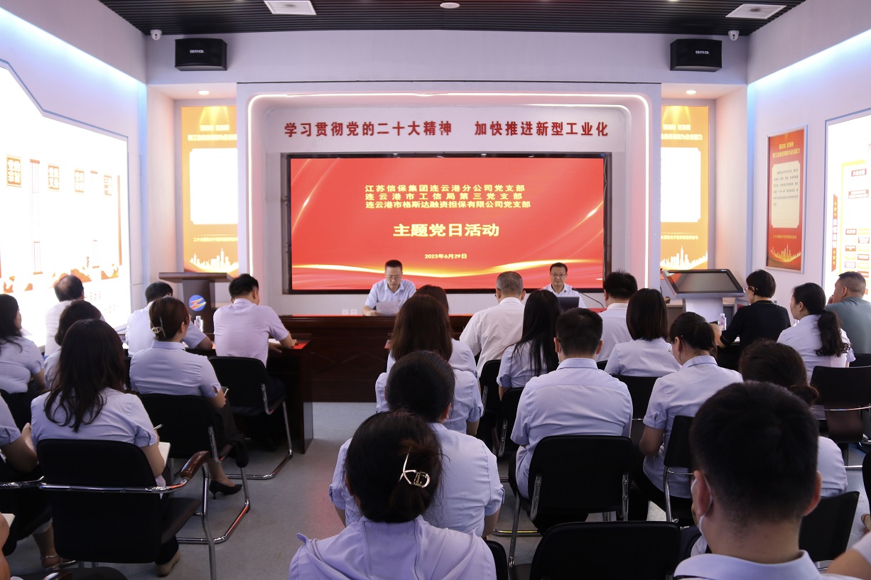 为庆祝中国共产党成立102周年,进一步贯彻落实党的二十大报告中关于扶持中小微企业和实体经济的重要论述,增强业务能力。6月29日下午,格斯达党支部联合江苏信保云开平台连云港分公司党支部、市工信局第三党支部开展联学共建主题党日活动,活动邀请人行连云港中心支行货币信贷科主要负责人做讲座,深入学习习近平总书记关于金融发展的重要论述。依据2023年宏观经济与金融形势分析报告,从供给、需求和预期层面选择若干指标客观分析了疫情三年我国经济情况,分析下一阶段货币政策思路。三个支部共40余名党员、员工参加活动。