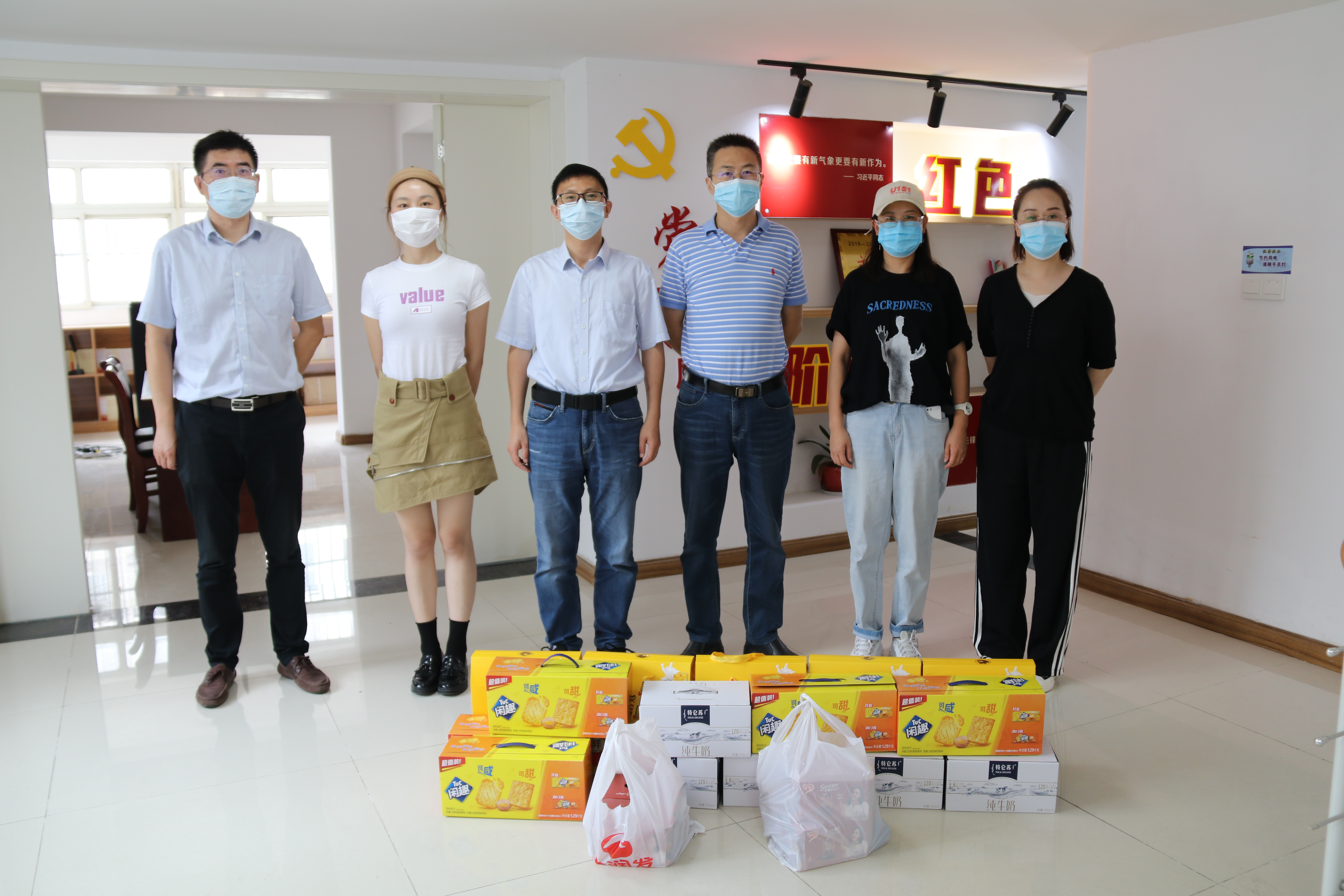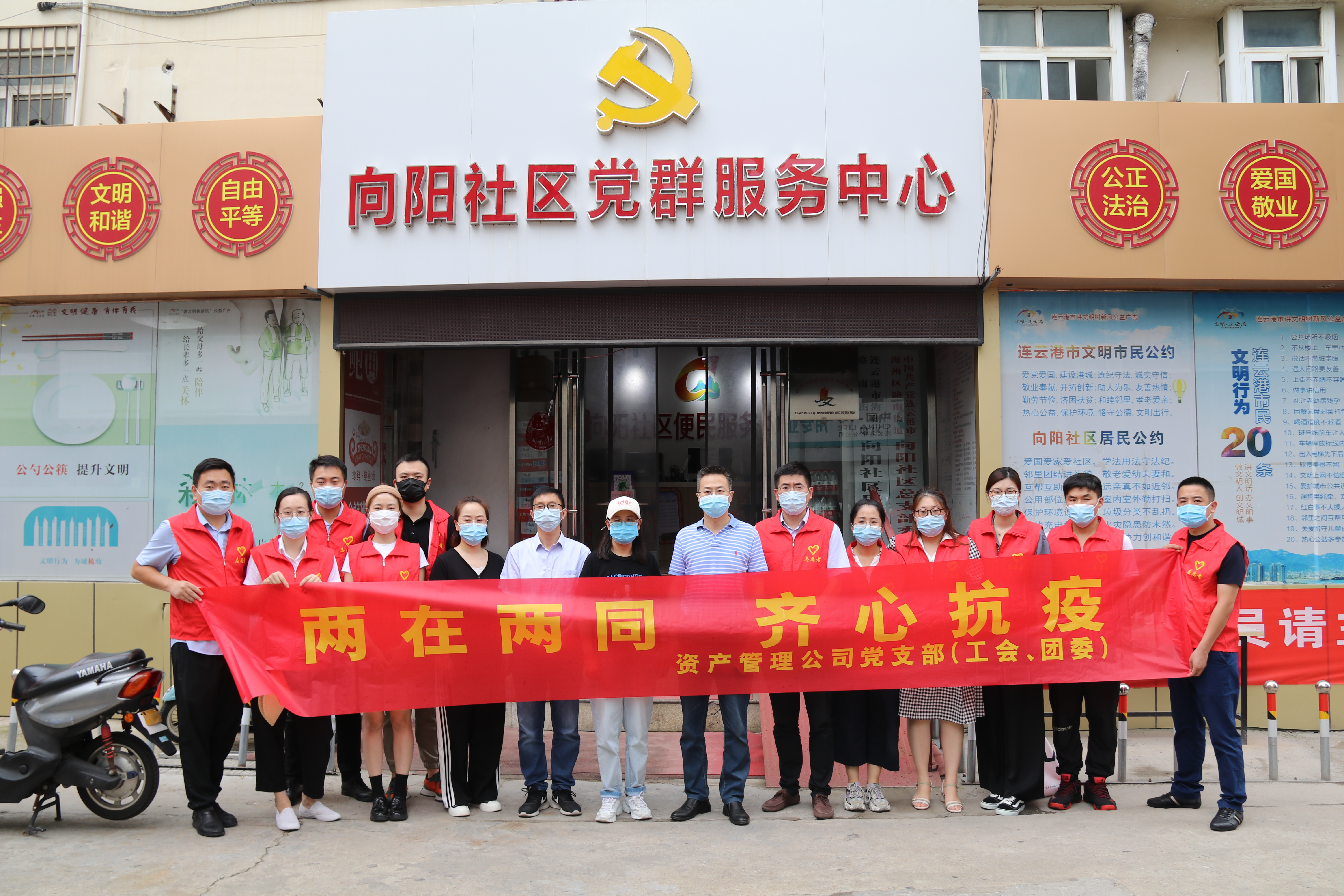 资产管理公司党支部坚决落实市委、云开平台党委“两在两同”建新功行动要求,闻令而动、守土担责,用实际行动践行伟大建党精神。 齐心协力,党建引领抗疫情。 该支部动员20名党员、青年志愿下沉到抗疫一线,配合海州区向阳社区开展联动防控,排查走访,蹲点值守,引导社区居民及时接种疫苗,构筑起疫情防控坚实屏障。8月25日,该支部联合海州区向阳社区开展“两在两同齐心抗疫”主题党日活动。通过慰问社区防疫工作者,为其捐赠物资;检查行程码、测量体温,登记疫苗接种情况、通知全民核酸检测,宣传防疫政策等工作,有效缓解社区防疫工作压力,切实践行“三个服务”。