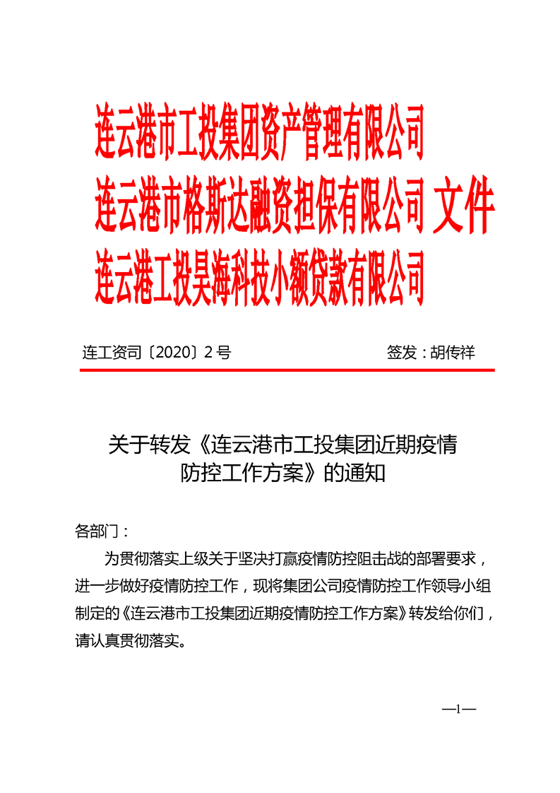 《连云港市工投云开平台近期疫情防控工作方案》的通知