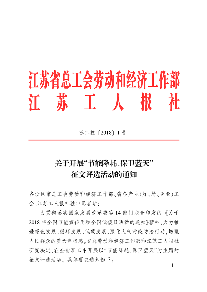 关于开展“节能降耗、保卫蓝天”征文评选活动的通知