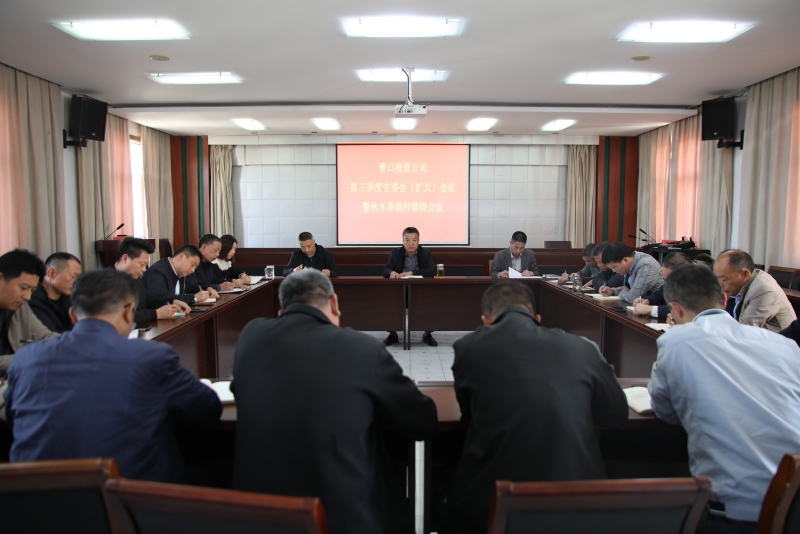 10月23日下午,青口投资公司召开三季度安委会(扩大)会议暨秸秆禁烧会议。公司党委书记、董事长、总经理史祥平,副总经理杨青松,各单位负责人、安全员以及安委会成员参加会议。