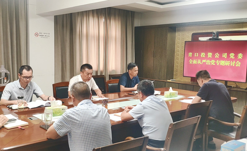 8月30日下午,青口投资公司党委召开全面从严治党专题研讨会,领导班子全体成员参加会议。