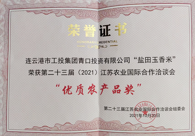 农洽会上,“盐田玉”大米凭借口感软糯、营养丰富的口碑优势,再次得到大会和参展商的好评,并在众多农产品中脱颖而出,荣获第二十三届江苏农业国际合作洽谈会“优质农产品奖”。