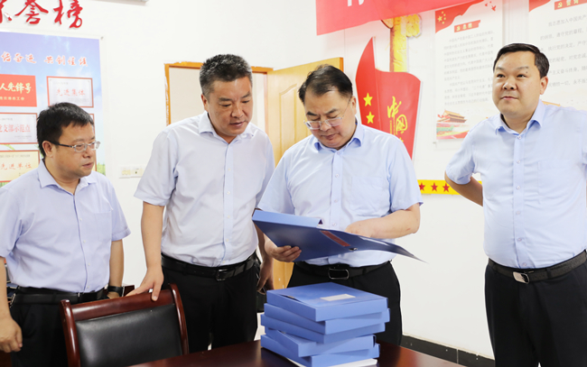 在大新农场党支部党员活动室,戴书记与支部负责同志攀谈交流,通过看现场、查台账、询问题,详细了解了大新支部党员强基项、创优项“1+1积分制管理”等工作情况。他指出,要贯彻新时代党的建设总要求和新时代党的组织路线,深化党支部标准化规范化建设,扎实开展党史学习教育和“两在两同”建新功行动,落实好“三会一课”等基本制度,进一步建强党在基层的战斗堡垒,引导广大党员传承伟大建党精神,做新思想的坚定信仰者和忠实实践者。