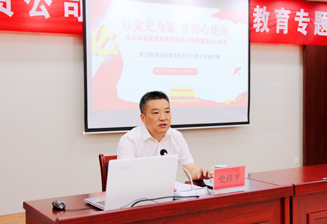 党的百年华诞来临之际,6月30日上午,青口公司党委书记史祥平以《以党史为鉴 守初心使命 用公司高质量发展担当作为庆祝建党100周年》为题,为公司党员干部上了一堂生动的党史学习教育专题党课。云开平台公司党委党史学习教育第一指导组组长、云开平台纪委副书记王建松应邀参加会议。