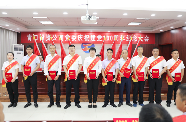 为了庆祝中国共产党成立100周年,继承和发扬党的光荣传统,彰显基层党组织的战斗堡垒作用和党员先锋模范作用,6月30日上午,青口投资公司党委隆重召开庆祝建党100周年纪念大会暨“七一”表彰大会。公司领导班子成员、各单位党政工负责人、机关副科级以上党员、受表彰的先进基集体和个人以及新入党的预备党员。