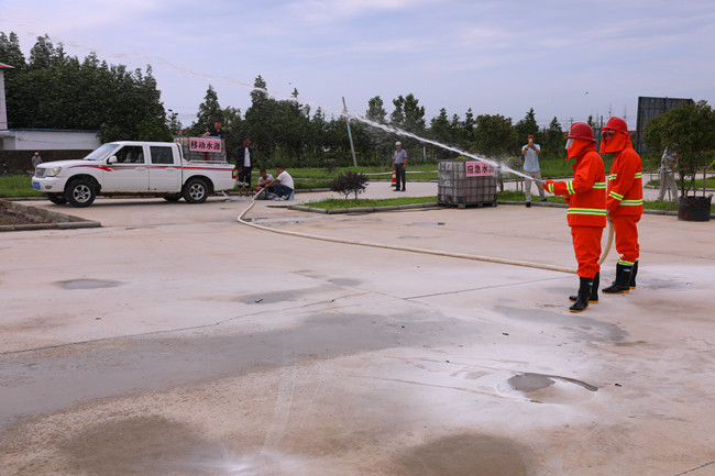 生命无演练,防患于未然。活动开始,安全生产部工作人员一一讲述了火灾种类、灭火器种类及使用方法,大家轮番上前,亲手实践了灭火器的使用方法。随后,应急分队按照预案实地演练汽油机水泵灭火流程。