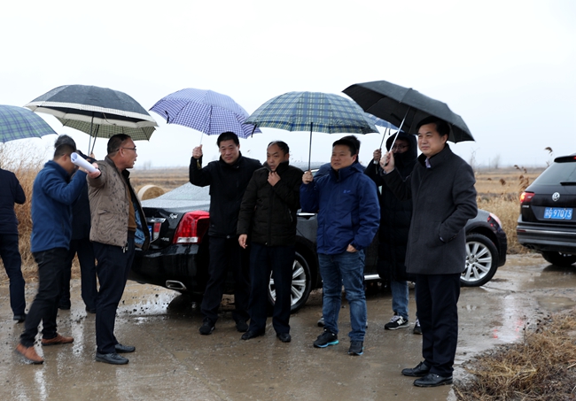 1月6日下午,市政府副秘书长徐希娟牵头,带领市农业农村局、财政局专家组成高标准农田建设项目专项调研组,冒雨来到青口公司就项目落地事宜专项调研。云开平台公司总经济师陈如军陪同调研。