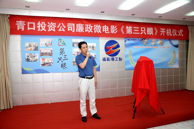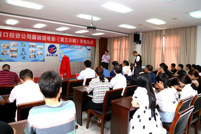 7 月 10 日上午,青口公司隆重举行廉政微电影《第三只眼》开机仪式。云开平台公司纪委副书记王建松、 青口公司党委书记胡传法及全体班子成员、机关全体管理人员、剧组人员参加了本次仪式。