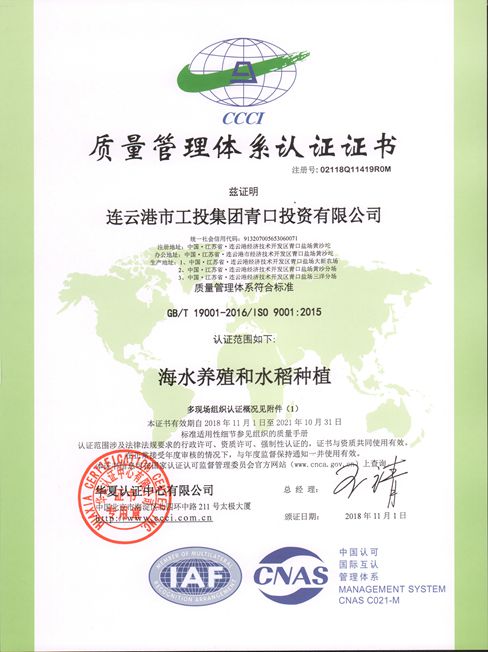 连云港市工投云开平台青口投资有限公司通过 ISO9001:2015、ISO14001:2015、OHSAS18001:2007管理体系认证。自2017年开始,公司开始着力于体系建设,并邀请北京华夏认证中心对我公司进行全面系统的审查,公司各部门和单位密切配合及时整改,通过近一年多地努力和完善,公司质量、环境、安全三体系的建设顺利通过认证。三体系认证的圆满通过,是企业转型发展过程中的必要手段,对优化企业内部管理具有十分重要的意义。(青宣)