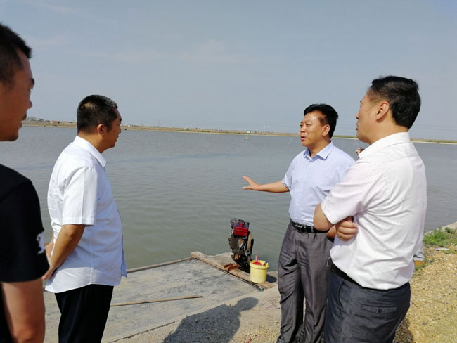调研团一行首先到养殖大户刘英军的养殖池塘查看养殖现状,随后到三洋排水站查看养殖池塘进排水水系是否有序畅通。