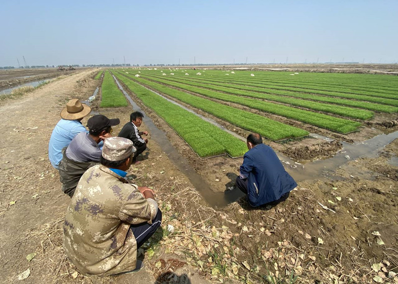 随着气温攀升,5月21日,大新农场已有种植户开始对软盘育秧的水稻小苗揭去覆盖的薄膜,农场班子成员奔走在田间地头,查看秧苗生长情况,做好技术指导,全程保障水稻生长,确保水稻增产增收。(王 璐)