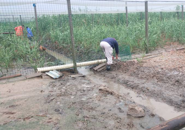 近期雨水较多,种养中心利用雨水天气,配合施工单位避开高温进行排水道清理。将原排水河道清淤治理,并对排水河道采取铁丝网加固加牢的措施,确保雨水期间鸡舍排水系统畅通。(田钟超)