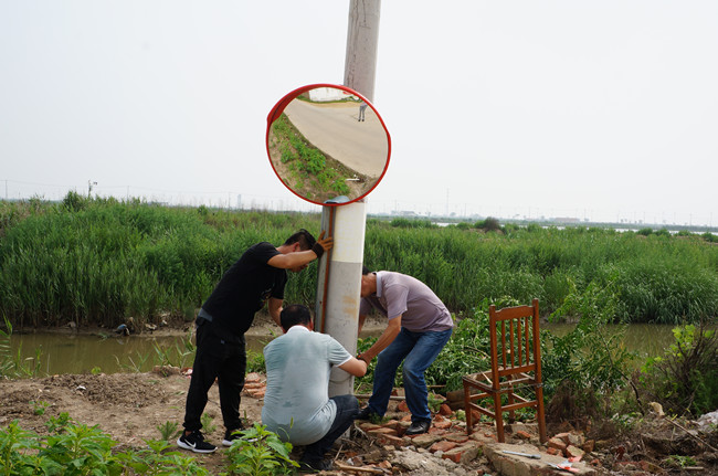 7月6日,针对辖区交通安全视觉盲区隐患突出的路口,黄沙分场购置并安装凸面镜,解决行人及车辆视觉盲区,确保出行安全。 (黄沙分场)