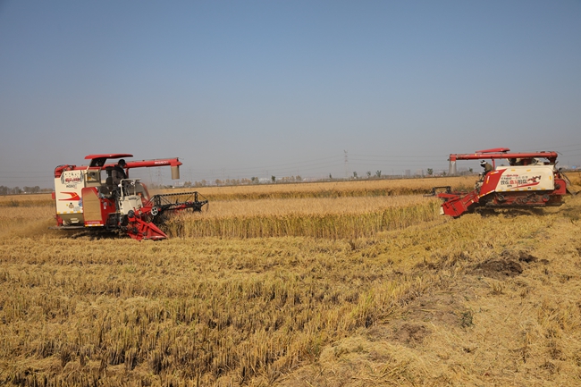 当前正值秋收大忙的关键时期,大新农场到处可见机械来回穿梭地收割、运粮、堆粮场景,空气中弥漫着淡淡的稻香,一派繁忙的丰收景象。为确保秋粮颗粒归仓,公司秋收工作组在田间和晒场间奔忙着,计量称秤、农机管理、巡查值守、后勤保障,统筹安排抢抓晴好天气抓紧水稻收割,全力打好秋收攻坚战。农场从114日开始进入收割期,十几台收割机、拖拉机等农机全部投入生产,收割机每台每天基本可以收割30亩左右,农场自营的5500余亩水稻预计于本周内全部收完。今年天气多变性小,适合水稻生长,预计今年水稻的产量将高出去年。大新农场