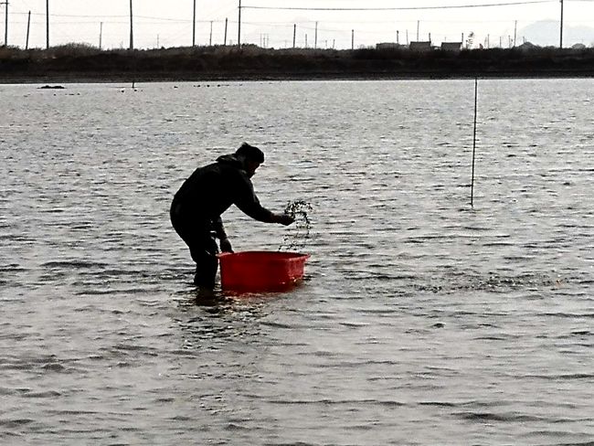 阳春二月,春光渐暖。三洋分场境内的养殖池塘经过冬准施工晾晒后已步入进水放苗的时段。养殖户们纷纷行动起来,为一年新的开始“打好第一仗”。二、三月份是池塘投放毛蛤、缢蛏等贝类苗种的最佳时期,是池塘战线里的“第一军团”。截止日前,分场内已有小部分池塘完成毛蛤、缢蛏等贝类苗种投放工作,其它池塘也在陆续投放中,为来年夯实丰收基础。 (霍中波)