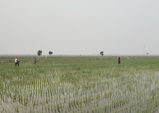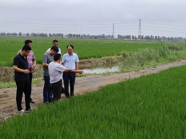 管理人员和农技师深入田间地头,对我们基本苗的苗情苗量、病虫害情况进行水稻中期生产检查,对下一步的水浆管理和病虫害防治提出指导意见,要求早防早治,适时搁田。