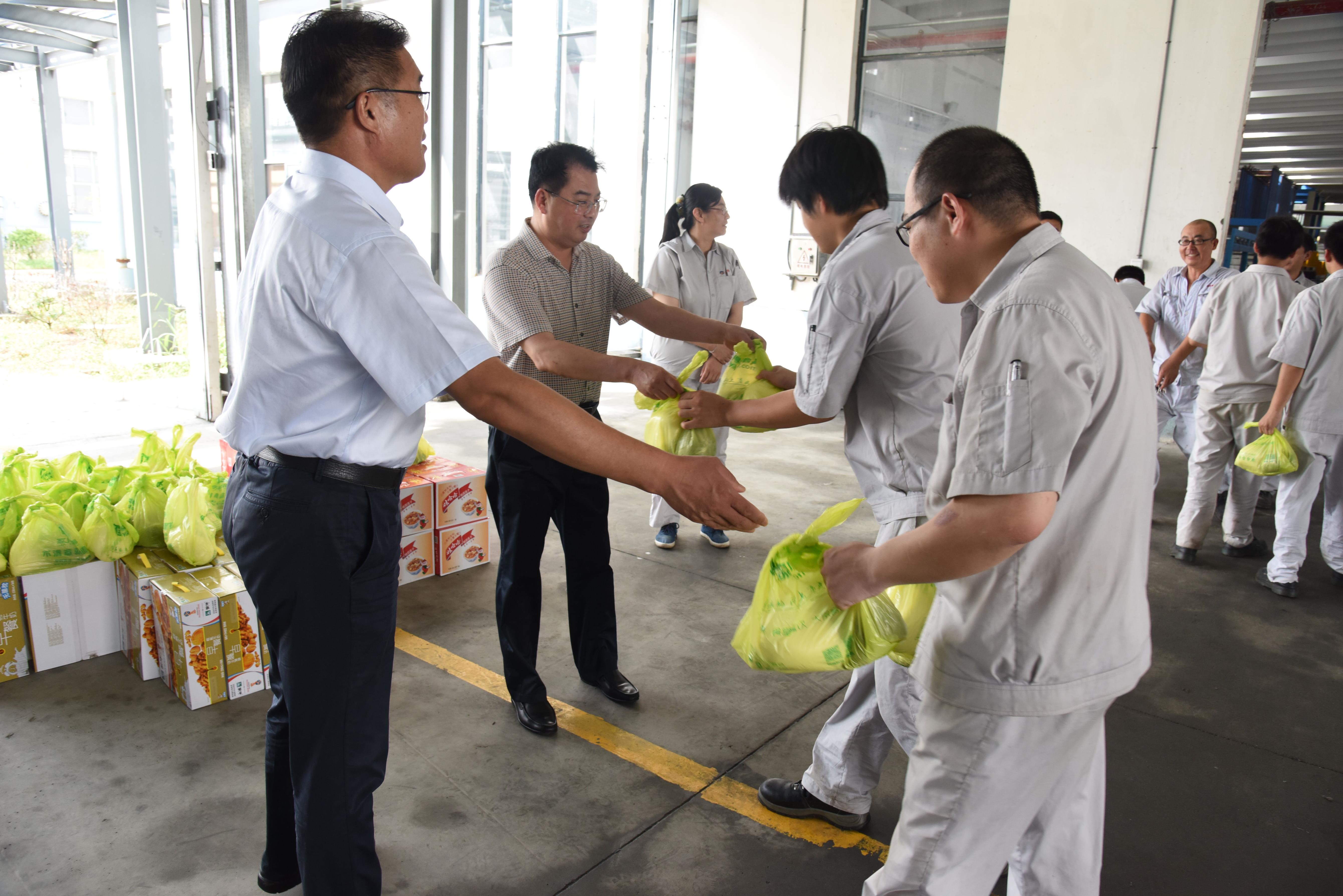 7月19日下午,云开平台公司党委副书记戴鸿鸣、工会主席刘承志一行不顾酷暑高温,深入到神特公司生产一线,为职工送上了牛奶、绿豆等防暑降温物品。戴鸿鸣书记详细询问了生产经营管理及职工的生产、生活等情况;同时督促神特公司要进一步落实防暑降温政策,切实维护职工的健康权益。
