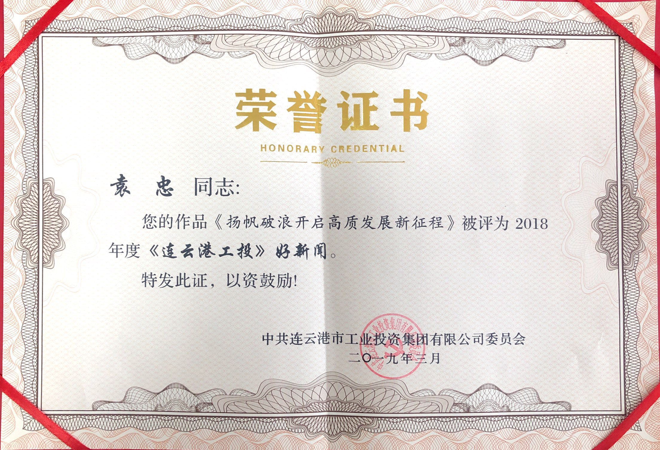 3月15日下午,云开平台党委召开了“聚焦高质高效,聚力创新创优”党内主题教育实践活动部署推进会。会上,我公司被评为“2018年度新闻宣传工作先进单位”;党支部副书记袁忠所著评论文章《扬帆破浪开启高质发展新征程》,入选“2018年度《连云港工投》好新闻”;李筠涵获得“2018年度新闻宣传工作先进个人”称号。