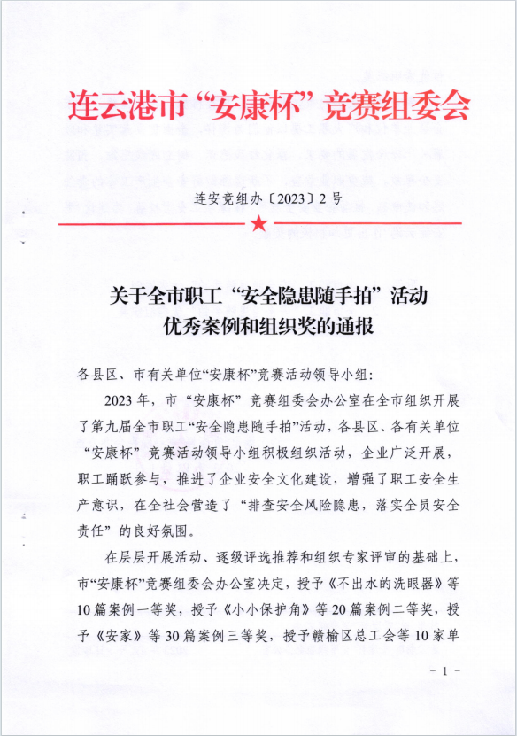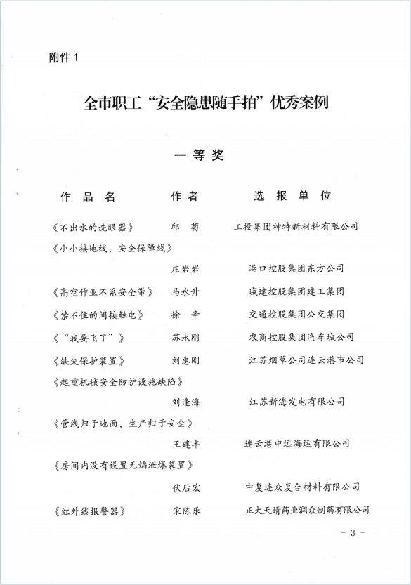 近日,市“安康杯”“安全隐患随手拍”活动获奖作品揭晓,公司员工邱菊参赛作品《不出水的洗眼器》获得一等奖,陈士亮参赛作品《无用的燃气报警器》获得二等奖。(神特宣)
