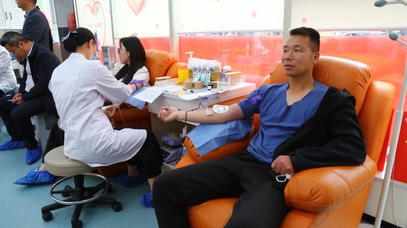 活动现场,在连云区墟沟爱心献血屋工作人员的指引下,参加献血的干部职工有序扫码登记、测量血压、抽血化验,积极配合做好献血前的各项准备工作。经过体检、验血合格后,大家依次捋起袖子捐献热血,整个献血过程有条不紊、秩序井然。此次献血职工中,既有第一次参加献血的“新人”,也有献血累计达6000毫升的“老熟人”,涓涓细流传真情,滴滴热血暖人心。