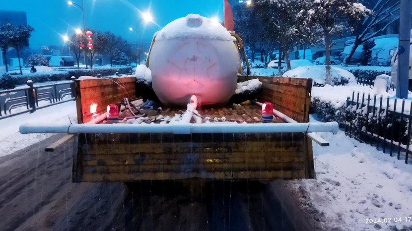 2月4日上午大雪“如约而至”,袁桂诚和他的小伙伴们按奈不住,跃跃欲试,公司领导一直说:没到时候,再等等,用你们的时候肯定是最关键的时候。