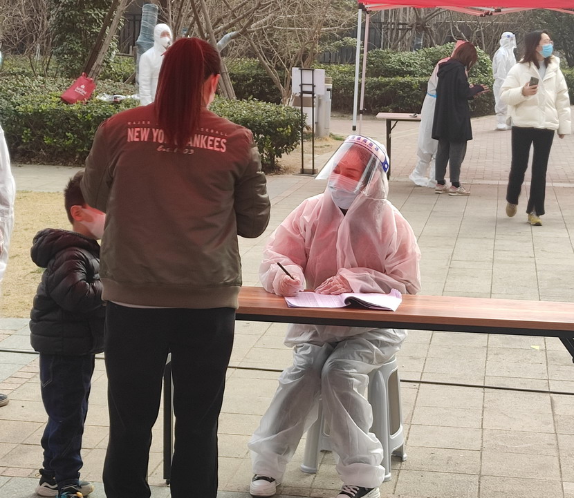 秦英是海州区幸福路街道西大岭社区普通居民,另一个身份她是市工投云开平台台北投资公司一名党员。11月中旬突然暴发新冠疫情,她第一时间联系社区,申请成为抗疫志愿者,与此同时社区也第一个想到了她。