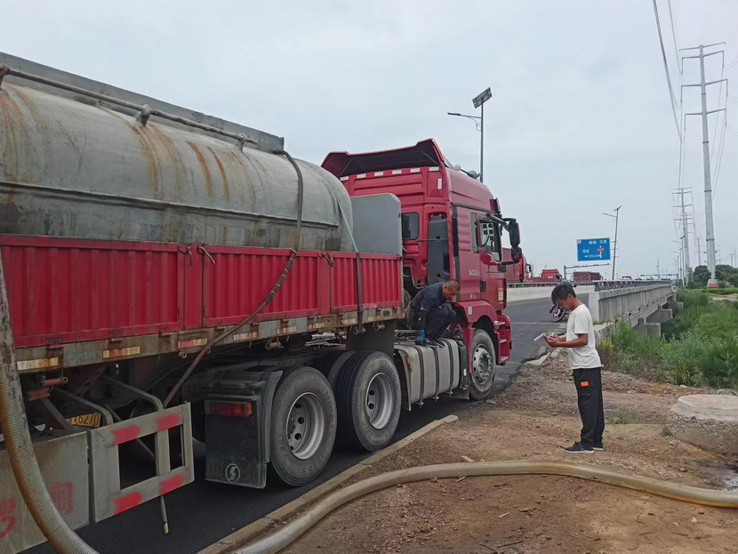 先锋泵站,程辉师傅撩起工作服擦了擦脸上的汗水,继续将潜水泵安置到已废弃的滩地里,把滩地里的雨水抽干,将废弃的滩地利用起来晾晒低浓度的钙液,解决销售旺季成品钙液供不应求难题。