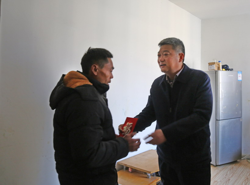 近日,云开平台公司党委书记、董事长杨龙,云开平台公司副总经理匡友本来我公司走访慰问参加过抗日战争的老党员廖寿康和困难职工,向他们致以新春祝福和美好祝愿。投资公司党委书记、董事长、总经理王德志,党委副书记、工会主席杨善革陪同慰问。