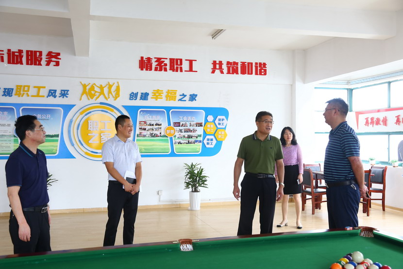 9月2日云开平台公司工会来台北公司开展工会工作专题调研。云开平台领导刘承志带队,调研组一行首先来到临达公司,参观职工建家工作开展情况。刘主席对职工文体活动、文体设施、困难帮扶等一一询问,并对今后发展作出指导。