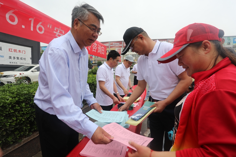 今年6月是第20个全国安全宣传月。6月16日,投资公司领导班子全员参加,围绕“落实安全责任,推动安全发展”主题,组织20余名安全管理人员在光伸建材广场开展“6.16安全生产宣传咨询日”活动。