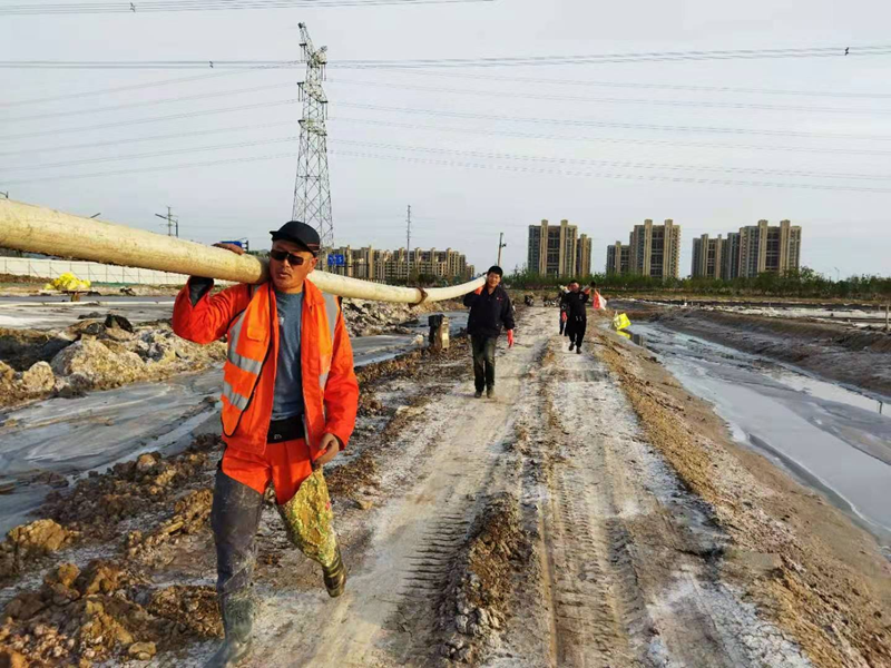 镜头四:新光路盐河边被开发区污水管道施工损坏的灌西钙液管道,抢修工作正在紧锣密鼓的进行中。争取早一天完成就能早一天开机打卤,将损失减少到最小。