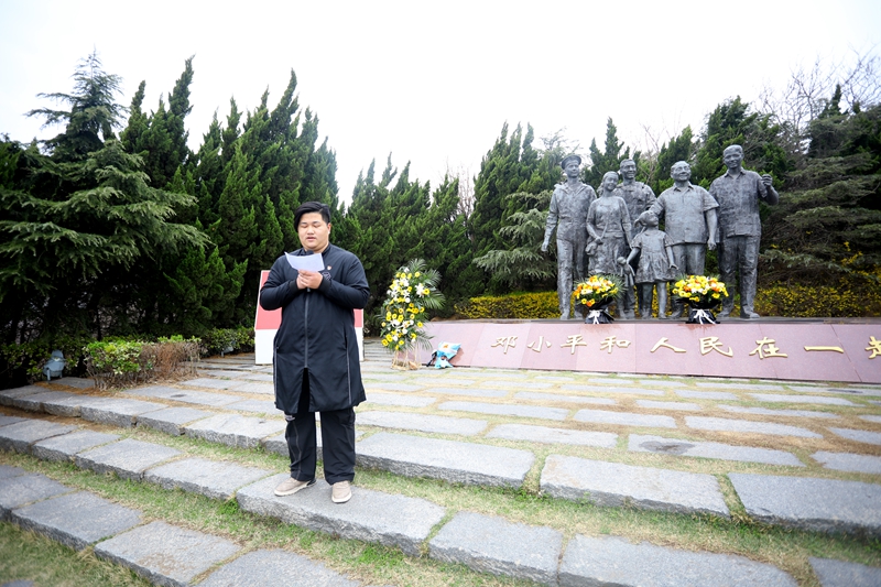 全体党员在“邓爷爷”雕塑前结队献花、鞠躬致意、重温入党誓词。党委副书记杨善革结合伟人和中国共产党的光辉历程、投资公司当前发展的实际和首要任务为大家上了一堂“实景”党课。